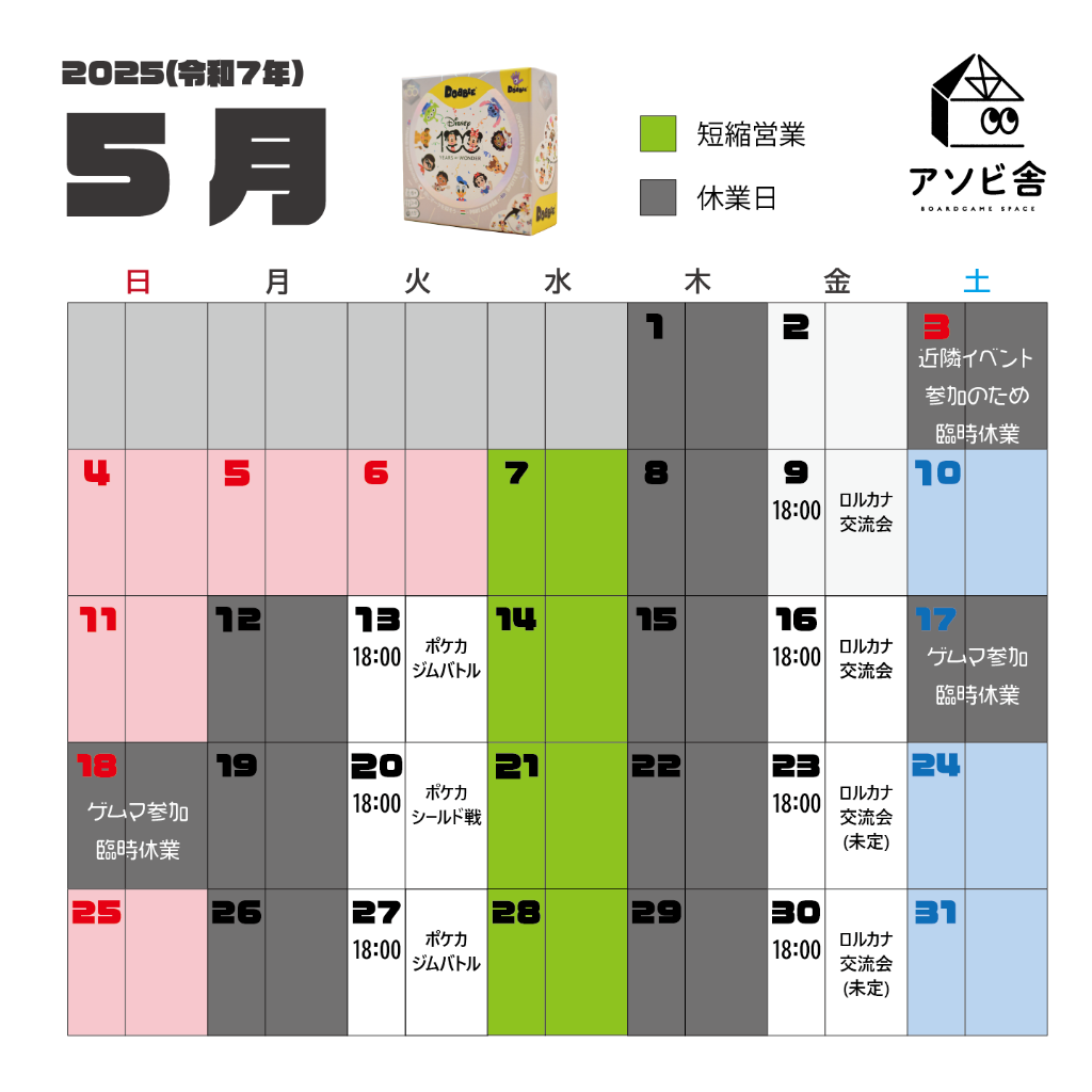 現時点での予定となりますので、臨時休業が増える可能性もございます!