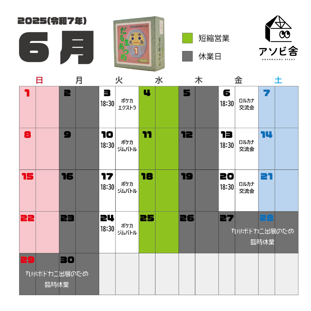5月&6月の営業カレンダー更新です!