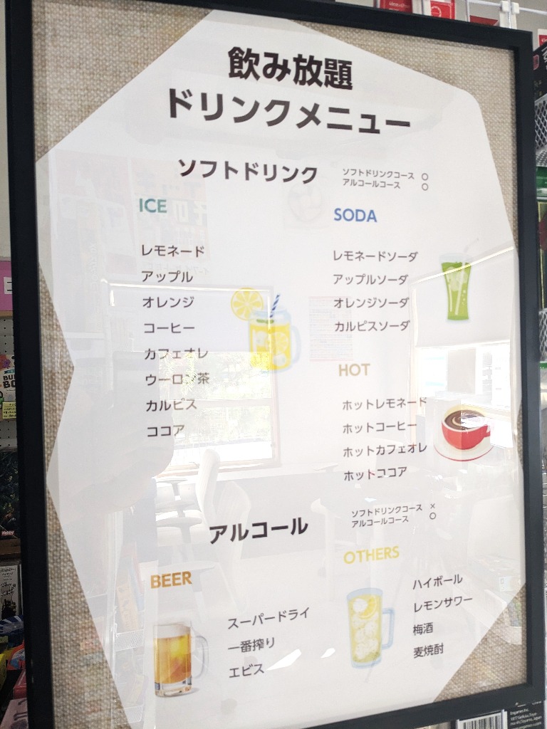 諸般の事情で、2025年1月より「アルコールコース」の提供が無くなり、3,300円/1日の「ソフトドリンクコース」のみとなります。