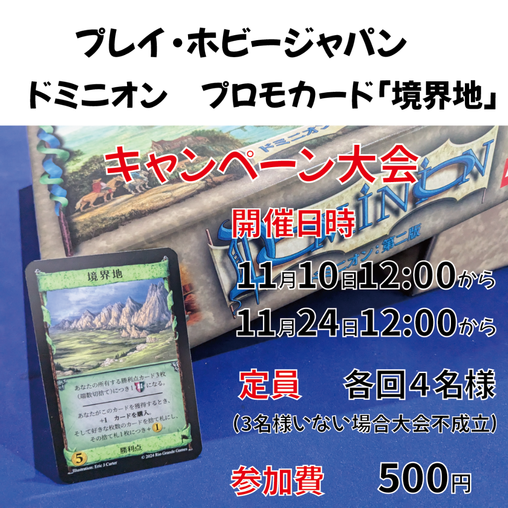 10日日曜 12:00~13:00 ドミニオン有償プロモイベント 参加費500円 前後で当店を通常利用される方は参加費込み3,500円 参加3名様以下の場合イベント非開催となります