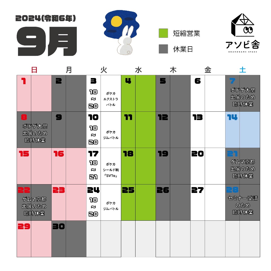 アソビ舎、本日も10:00~オープンです