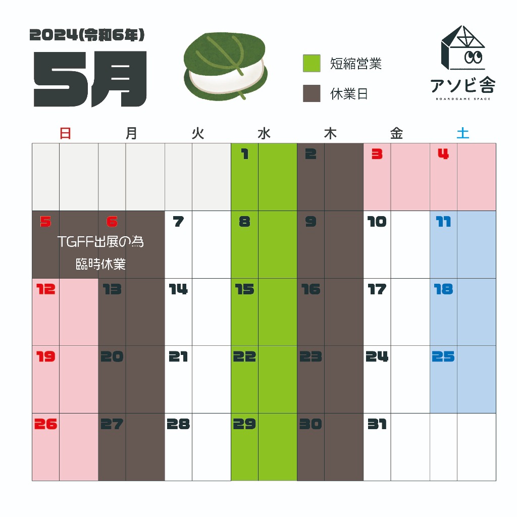2024年5月の営業カレンダーです!