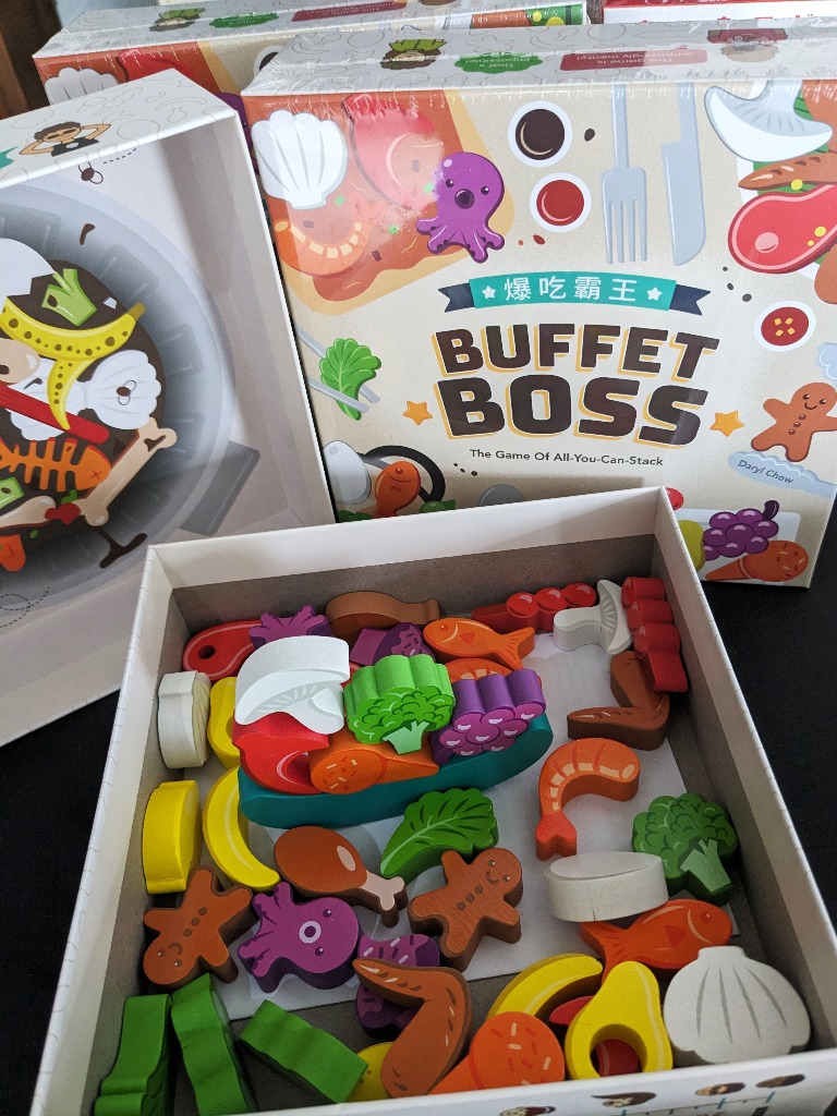 当店で遊んで頂いたあと「欲しい!」と言われたお客様が数名おられた「ビュッフェボス」をゲームマーケットにて仕入れてきました~