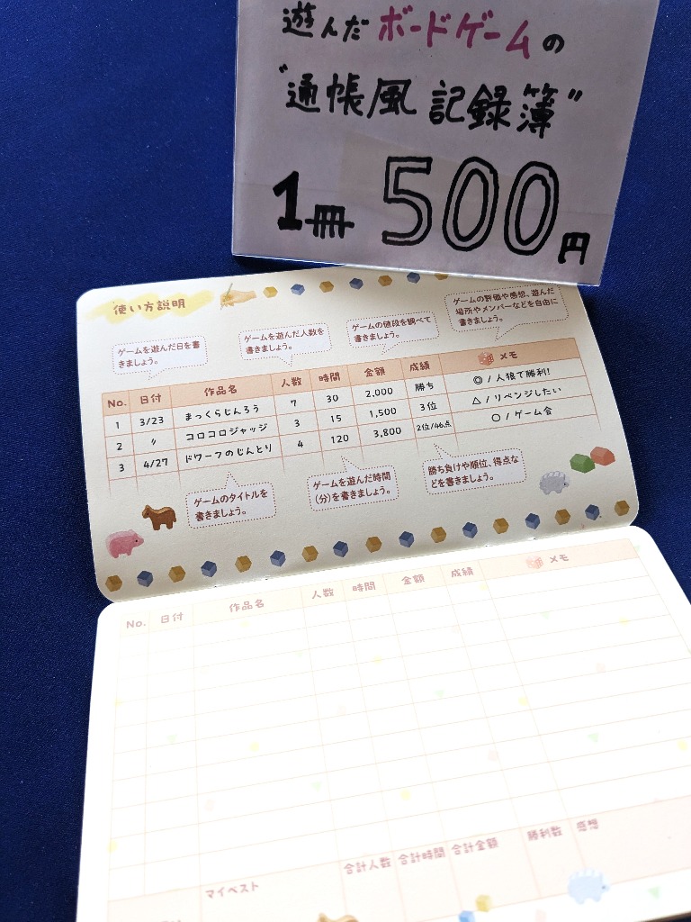 また、自分で記録する用に、通帳風記録簿「ボードゲーム遊貯」を買ってきたので、私も記録したい~という方は多分仕入れられると思うので、教えて下さい~