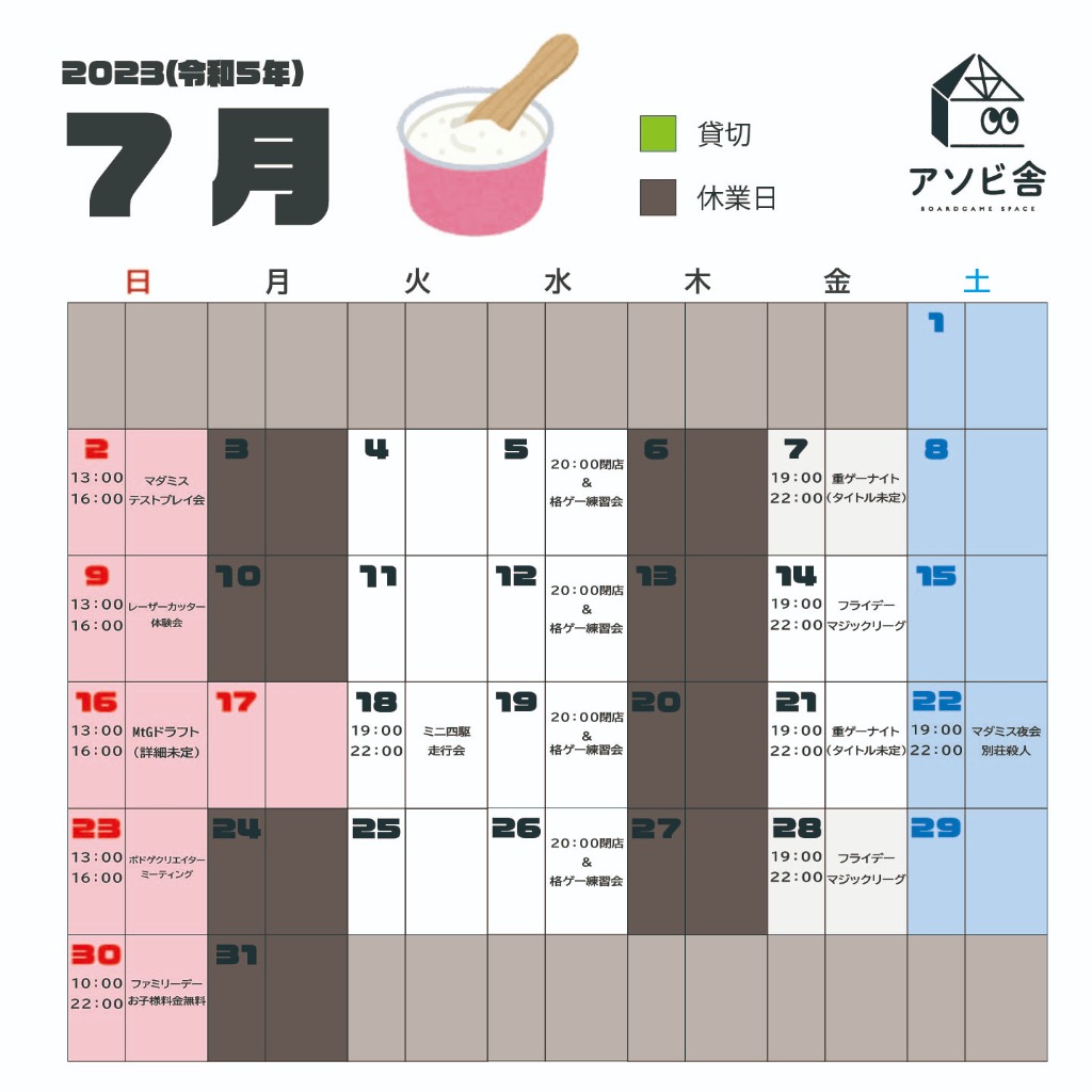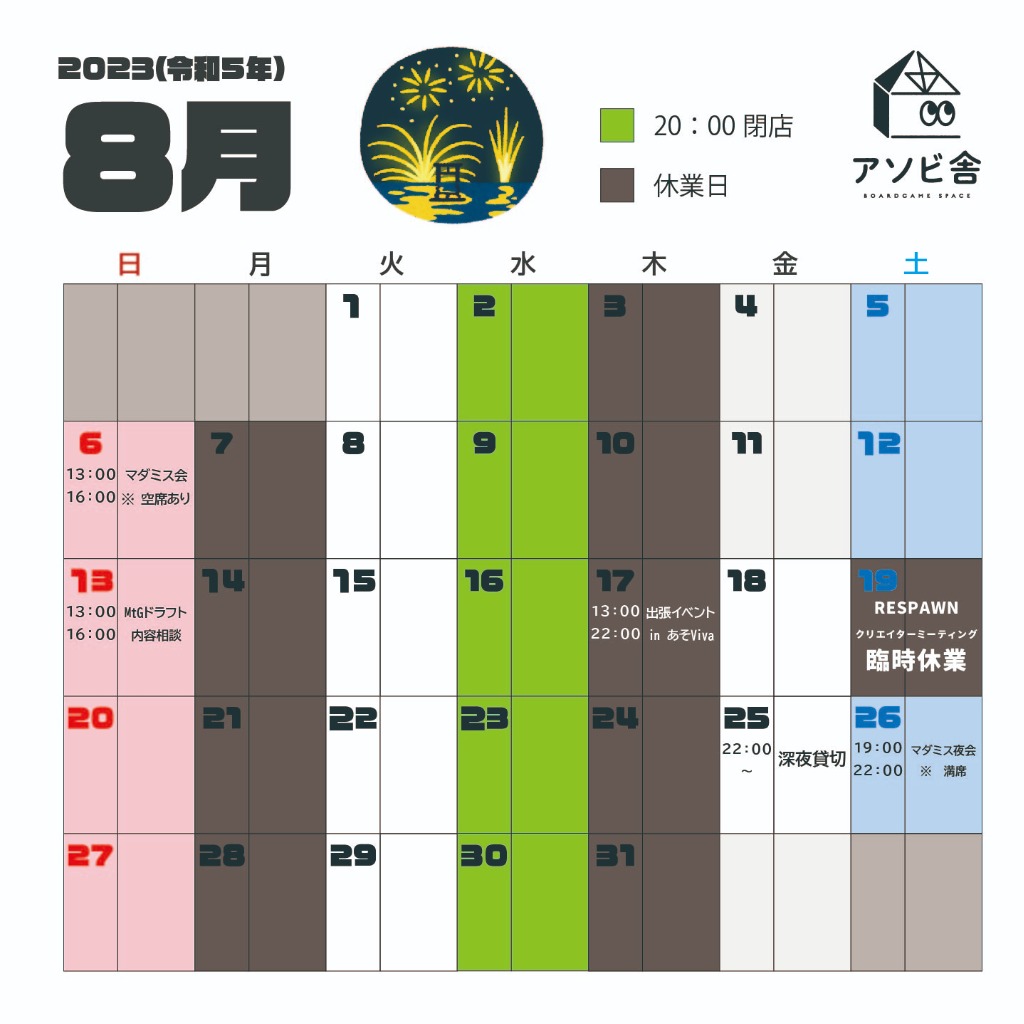 8月の営業カレンダーを公開します😆