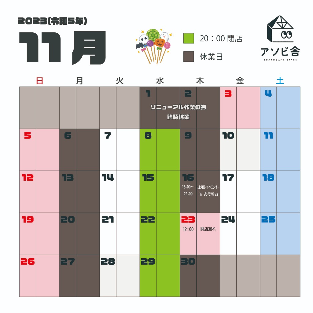 10月の営業情報です。